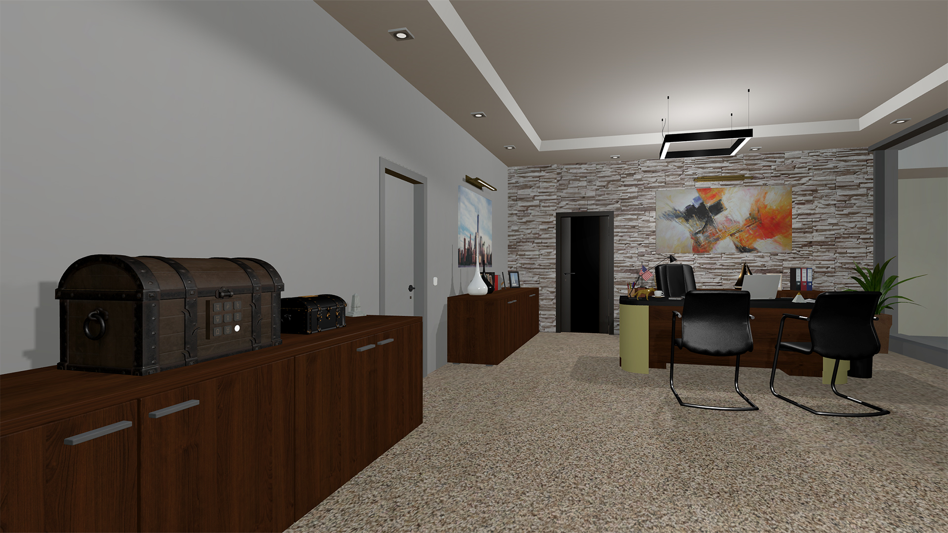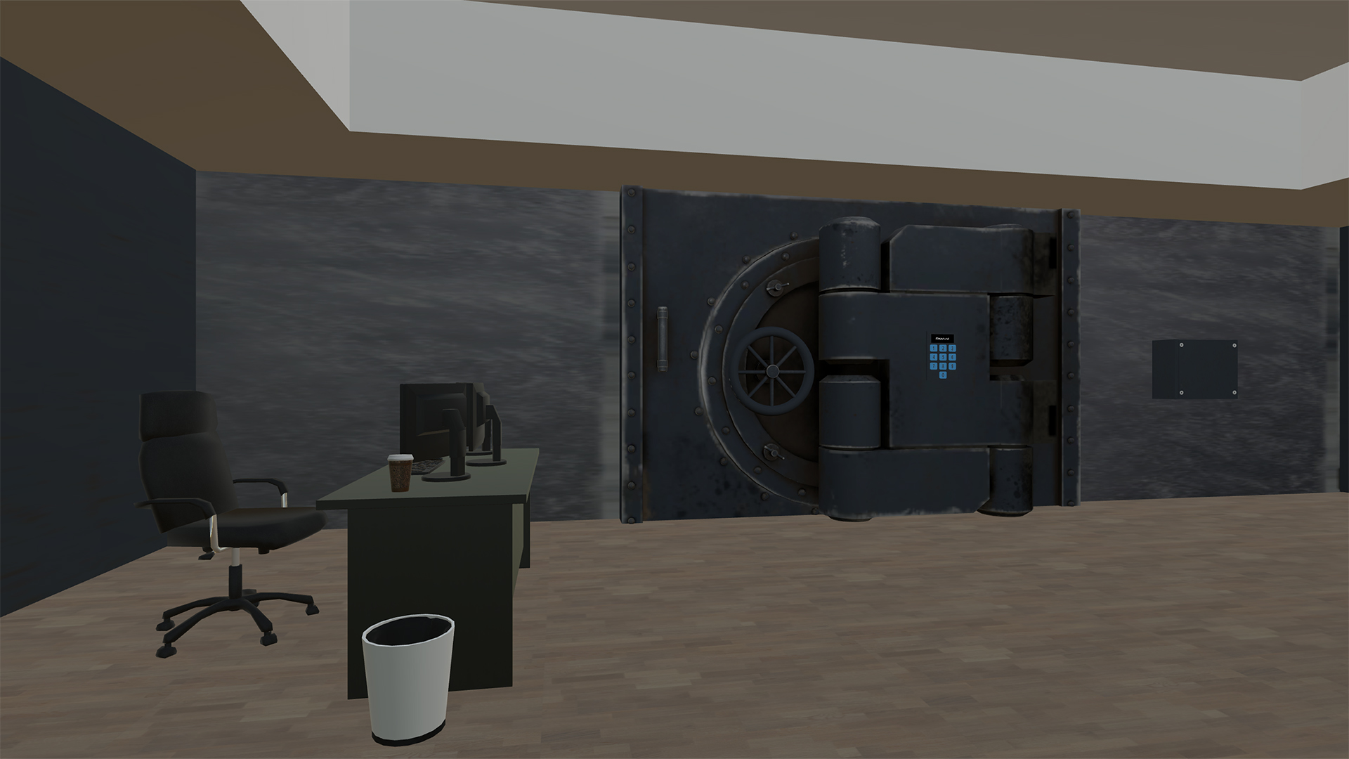 As a subject of a virtual test you have been transferred into a world where you are a customer of a robbed bank. Left alone and locked you must gather all of your abilities to get out of that space which is full of secrets. You have no one to help you except your own wit. Can you solve all riddles and escape?